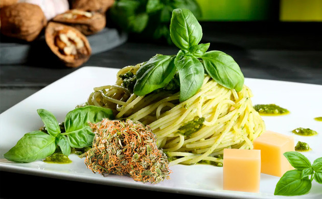 Привычные спагетти заиграют новыми красками вкуса, пользы и эффекта, если добавить каннабис. Потребуется 500 г спагетти, 4 г декарбоксилированных соцветий конопли, 60 г кедровых орешков, 5 зубчиков чеснока, 80 г свежей зелени базилика, 120 г пармезана и 100 мл оливкового масла.