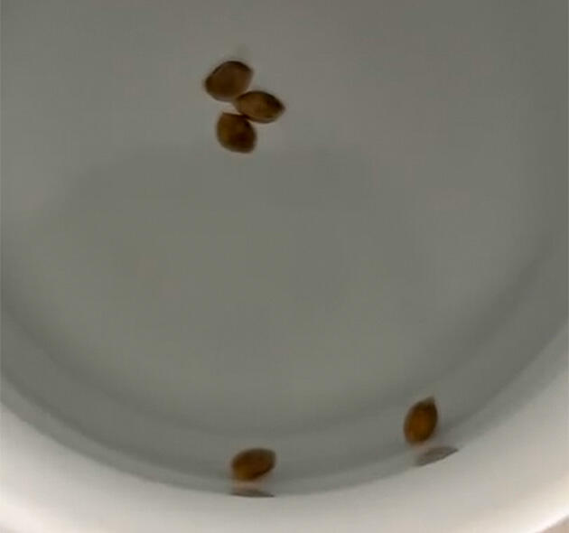 Начал цикл с классического и проверенного способа проращивания семян между ватных дисков. Он удобный, быстрый и позволяет максимально контролировать процесс без лишней возни. Перед тем как отправить семена во влажную среду, я всегда замачиваю их в бутилированной воде на 14-16 часов. Это помогает скорлупе размягчиться и ускоряет пробуждение зародыша. После этого семечки аккуратно перекладываются на ватные диски.