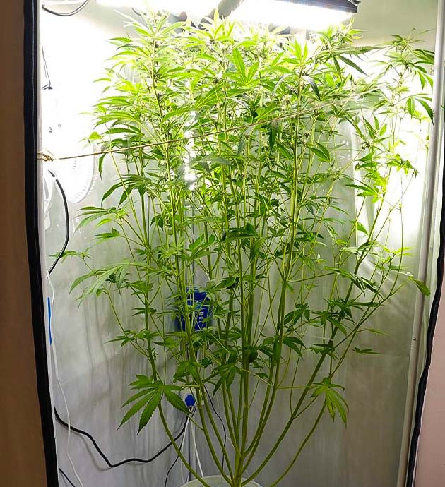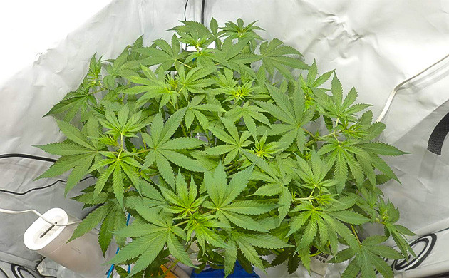 Кустик активно растет. Крона стала заметно гуще, новые стебли быстро сформировались, вытянулись и заняли свое место под солнцем. От горшка до макушек – 52 сантиметра. Условия в палатке стали лучше, температура опустилась до 28 °C, температура раствора такая же. Влажность – 65 %. Расстояние до ламп около 90 сантиметров. В палатке появился запах, не резкий, но весьма ощутимый. Раствор не менял, не добавлял, его показатели с датчиков остаются такими же: ppm 650, pH 5,8.