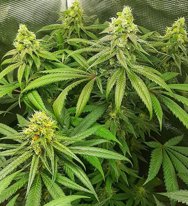 На 12-й неделе растишки кушали BioBloom и BioGrow, 2 мл/л и 1,5 мл/л соответственно. Вытягивание почти завершилось, рост большего куста 140 сантиметров. Соцветия начали приобретать очертания. Пока никаких проблем, которые бы стоили упоминания.