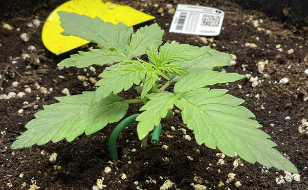 Проросшая семка была высажена в горшок объёмом 17 литров. Первая неделя меня немного насторожила: саженец развивался медленно и неохотно. Поэтому я всё-таки решил прибегнуть к единоразовому использованию неорганического удобрения, дал растихе немного Root Juice вместе с поливом, чтобы корневая система развивалась лучше. Условия в моём гроубоксе площадью 0,8 м² были такими: