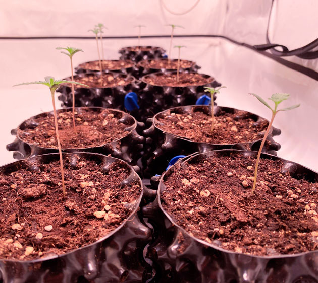 Я поместил десять семян в EazyPlugs, и через два дня взошло девять из них. В течение первых двух недель выращивания я буду использовать только почву Guanokalong Complete Mix Soil с добавлением гуминовой кислоты и микоризы.