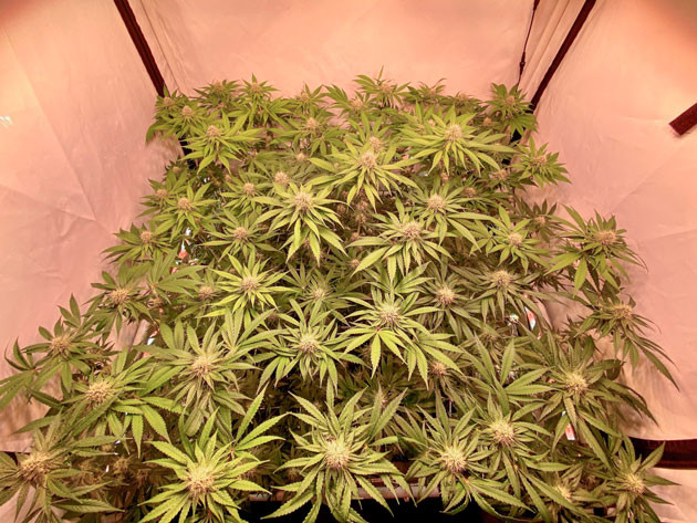 Растишки достигли своего пика в 110 сантиметров. Пришло время для последней дефолиации и увеличения дозировки питательных веществ для поддержания правильного развития шишек.