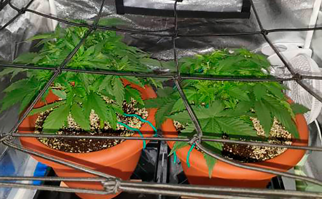 Девочки сразу отозвались на увеличение количества света и питательных веществ. К концу четвертой недели они подросли на пять сантиметров, а я, в свою очередь, установил сетку ScrOG. К середине пятой недели кустики доросли до установленной сетки.