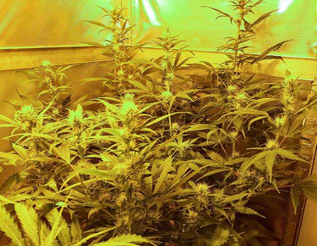 На 12-й неделе ветки перестали справляться с весом соцветий, некоторые не просто гнулись, а буквально надламывались. Поэтому было принято решение собирать урожай в середине недели, подержав сутки в темноте. Очистил их от лишней листвы и развесил сушиться в палатке, не срезая ветви, как есть, головой вниз.