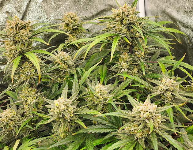 Генетикой Super Lemon Haze Auto остался полностью доволен. Развитие практически полностью соответствовало заявленным срокам. Всего месяц веги и семь недель цветения. Уверен, без тренировок кусты созрели бы за указанные 63 дня. Отличный пример сативного автоцвета средней высоты, шишки не слишком большие, но плотные, ароматные и смолистые. А главное, их много, они покрывают практически всю длину ветвей. Рубка и маникюр заняли целый день с перерывами на обед и кофе. Просушка шишек заняла неделю, после которой я взвесил ароматный урожай этой цитрусовой красавицы. Вышло 340 грамм готового продукта, отманикюренного и готового к пролечке.