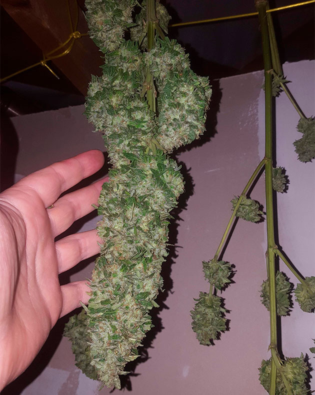 Сушился урожай неделю, а с одного куста у меня получилось собрать 119 грамм шишек. Они имеют сладкий фруктовый аромат с примесью древесных ноток. Дым густой и не вызывает приступов кашля. Но самое главное – это эффект. Сативный энергичный кайф в чистом виде! Он разгоняет мозги, наполняя голову совершенно неожиданными мыслями и идеями. Неспроста сорт получил такое название, неспроста!