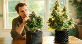 Более рационально использовать горшки минимального размера, при которых корневая система каннабиса будет иметь достаточное пространство для роста. В большинстве случаев будет достаточно емкости на 5-8 литров, и только для самых крупных сативных гибридов потребуется контейнер порядка 10 литров. Больше брать не стоит точно. В остальном ориентируйтесь на генетику растения, размеры помещения, где будут находиться кусты, особенности микроклимата и другие сопутствующие факторы.
