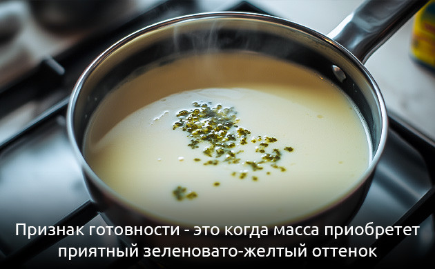 - По мере приготовления масса начнет немного загустевать и приобретет приятный зеленовато-желтый оттенок. Это и будет главным признаком готовности продукта.