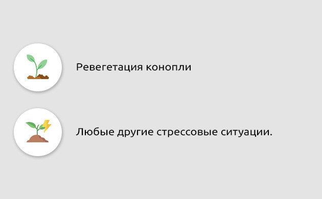 При переходе от вегетации к цветению потребности конопли в питательных веществах изменяются. Для формирования соцветий растению необходимы дополнительные дозы фосфора и калия, а потребность в азоте уменьшается. Удобрения для старта цветения содержат соответствующий состав макроэлементов и позволяют каннабису быстрее подготовиться и перейти к цветению. Использовать подобные комплексы можно еще с конца вегетации, чтобы смена фазы наступила как можно раньше. Правильно подобранный рацион простимулирует раннее цветение и положительно скажется на урожае.