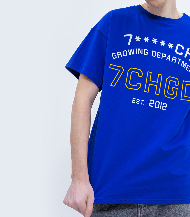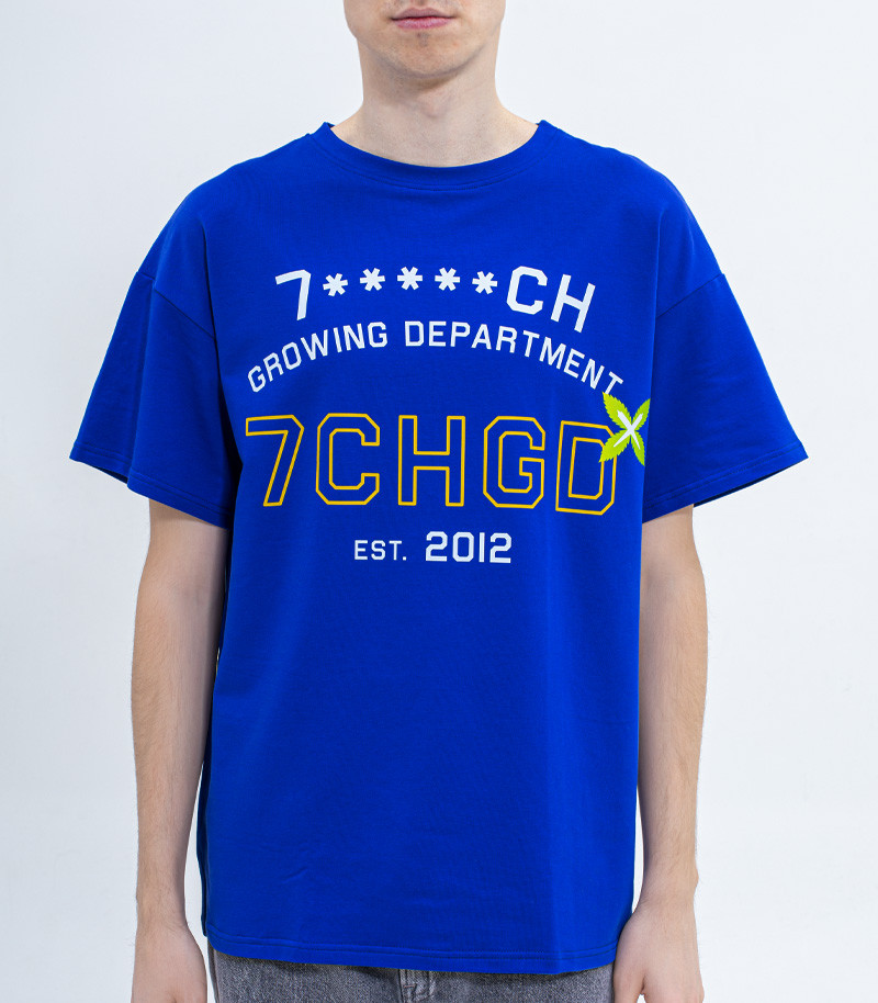 Синяя футболка с логотипом и надписью 7CHGD, что означает «Департамент гровинга «Семяныча», станет отличным пополнением гардероба. Она на 92 % состоит из хлопка, благодаря чему приятная на ощупь, мягкая и не вызывает дискомфорта от соприкосновения с телом. Футболка выполнена в фасоне оверсайз, который является одним из наиболее трендовых направлений, отлично сочетается с другой одеждой и подходит как парням, так и девушкам. Порадуйте себя нашей фирменной футболкой или подарите другу-единомышленнику. В любом случае футболка 7CHGD станет отличной покупкой.