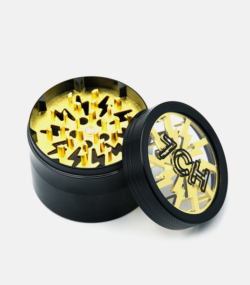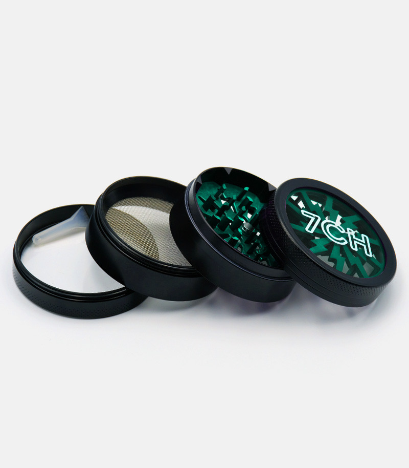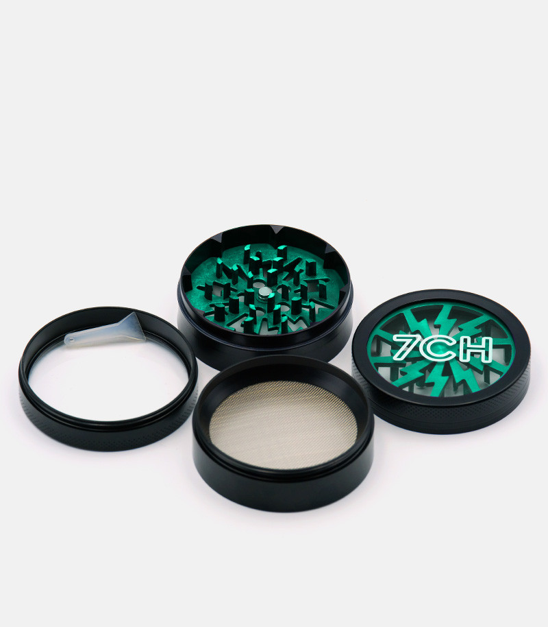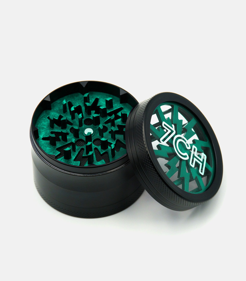 Измельчение сушеных материалов еще никогда не было таким простым. Гриндер из цинкового сплава – это надежный девайс, который прослужит гроверу долго. Он состоит из трех камер. Отличительная особенность изделия заключается в прозрачной верхней крышке. За счет этого можно наблюдать за процессом измельчения. Ножи ромбовидные и очень острые, что позволяет накрошить сушеные травы за несколько движений. Крышка крепится к отсеку с лезвиями при помощи магнита. Таким образом, даже если гриндер перевернуть, он не раскроется. Следующие две камеры предназначены для хранения измельченного продукта. Одна большая и достаточно вместительная, она имеет диаметр 63 мм. Нижняя камера используется для сбора пыльцы. Для этого отсек оснащен металлической сеточкой, через которую просеивается самая мелкая фракция. У гриндера оригинальный дизайн во многом благодаря прозрачной верхней крышке. Доступен для заказа в разных цветах.