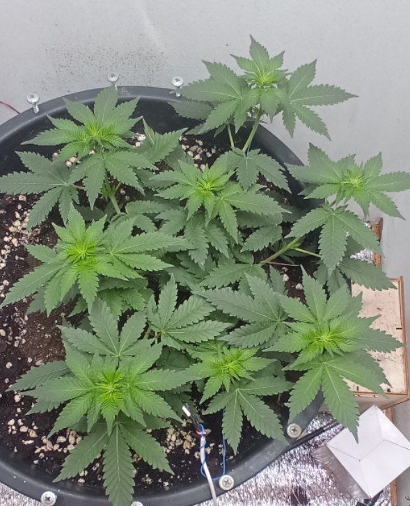 Тем не менее поднял куст от каски до харва за 4 месяца, на цвете держал более 60 дней. На веге пытался сделать FIM, но что то криво недорезал и в итоге макуха все равно росла, больше резать уже не стал чтоб не стрессовала. Применял LST по круглому караксу из аллюминиевой проволоки, после пятой пары листьев, думаю гнуть надо было начинать раньше, так как стебель уже успел одревеснеть и хорошо гнулся лишь после засухи в 2-3 дня