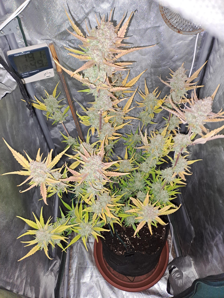 Я определенно собираюсь снова вырастить этот сорт. Он разросся и работал бы намного лучше, если бы у меня не было нескольких проблем, на решение которых мне потребовалось некоторое время. У нее фиолетовые бутоны, но на этом фенотипе сохранились зеленые листья. Я собрала 28,21 унции влажного урожая, отрезав большую часть листьев. Я обновлю, как только он будет вылечен и его можно будет курить. Не могу дождаться!