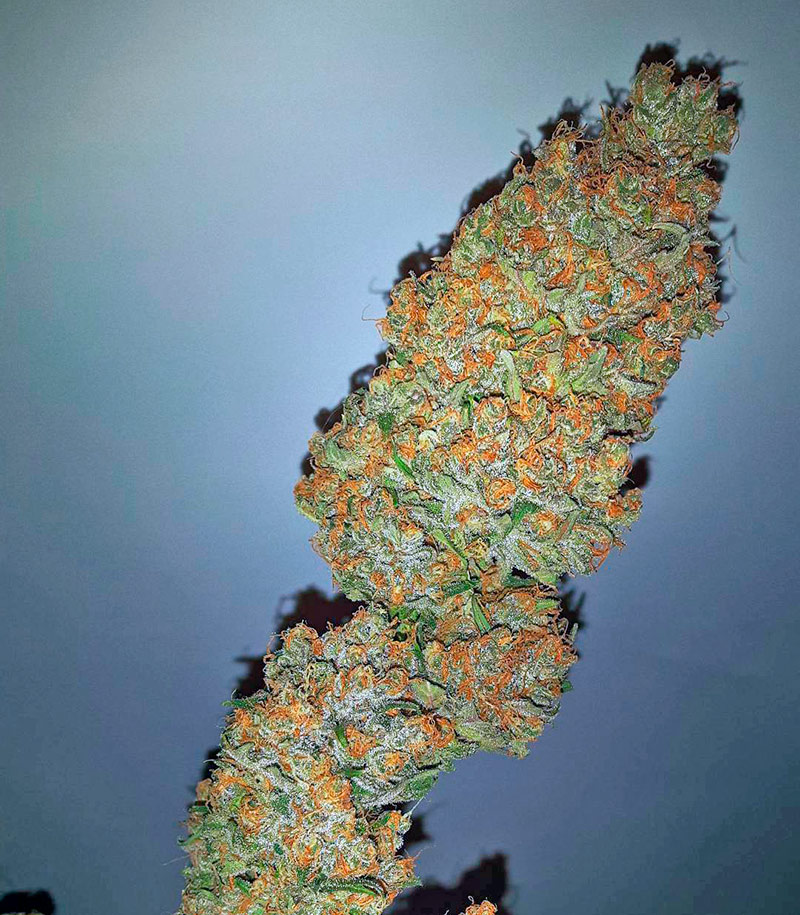 Это компактное, но очень коренастое и мощное растение по своей структуре больше всего напоминает рождественскую ель. На мощной центральной коле растут яркие насыщенно-зеленые листья. Расстояние междоузлий достаточно короткое, что заметно усложняет процесс маникюра. Крупные плотные шишки выделяют огромное количество смолы. Оранжевый ворс заменяет гирлянды на этой «ёлке». Период цветения короткий и занимает не более 2х месяцев. Гроверов порадует урожайность сорта, в помещении вы можете получить до 600 грамм с м2. Гибрид достаточно стойко переносит перепады температуры, а также демонстрирует природную устойчивость к грибкам и инфекциям. При цветении, растишка распространяет сильный приторно-сладкий аромат, поэтому очень важно обеспечить помещение качественной системой вентиляции.