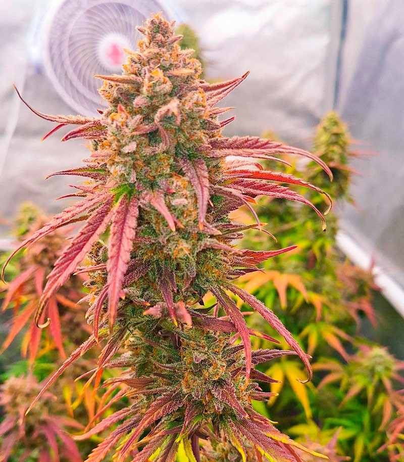 Развивается автоцвет стремительно. Фаза вегетации длится около 3 недель, после чего растения перестраивают свои внутренние процессы и переключаются на активное формирование бутонов. Сами соцветия округлые, не слишком крупные, в меру плотные, но запредельно смолистые. Белоснежный «иней» скрывает под собой все тело бутонов, предстающих перед глазами пиками заснеженных горных вершин. Вместе с началом созревания посадки приходит и сильный аромат. Вот почему для индорного гровинга производитель настоятельно рекомендует использование системы угольной фильтрации воздуха, а в ауте советует параллельное выращивание ароматных трав или цветов, которые смогут замаскировать запах конопли.