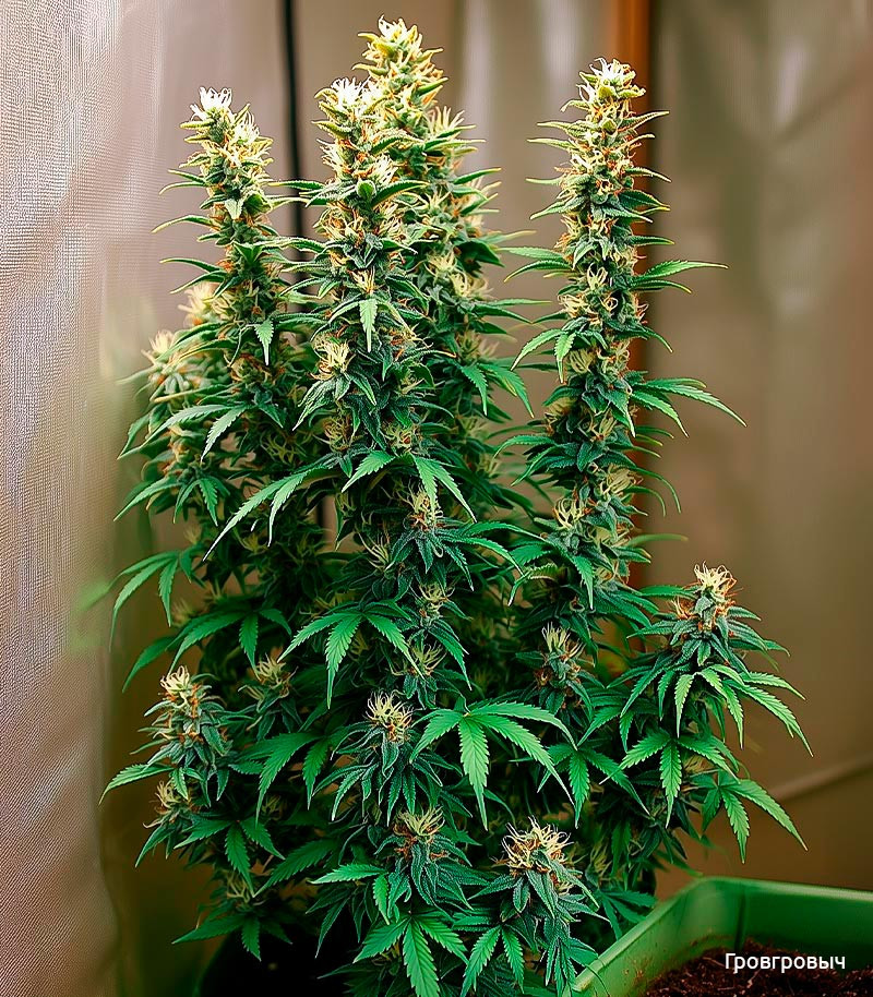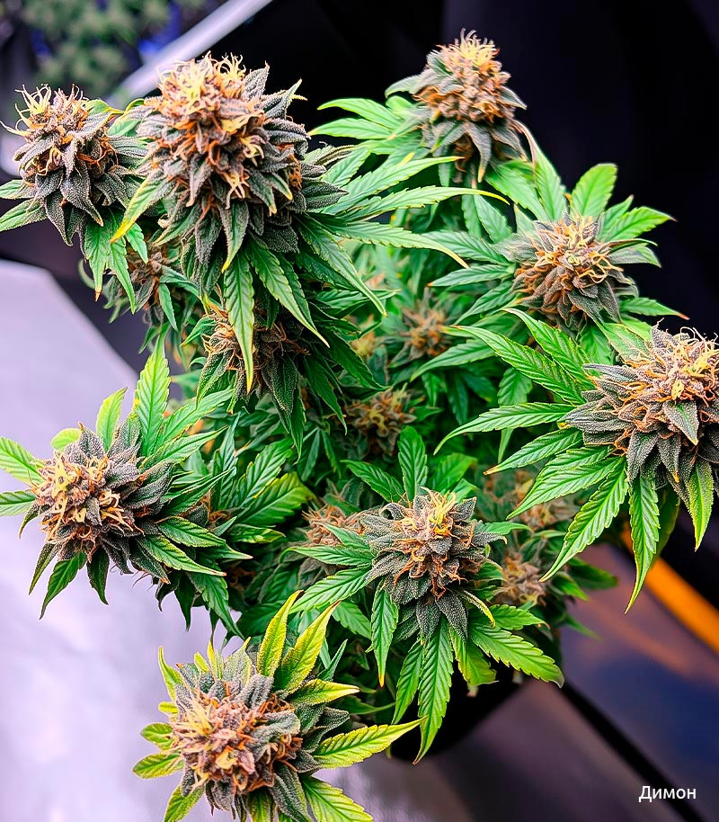 Растение не боится плесени и низких температур. Его иммунитет способен справиться со всеми наиболее распространенными заболеваниями. Кусты вырастают крепкими и ветвистыми. Их рост редко превышает отметку в 1 м. Они хорошо реагируют на техники контроля роста и повышения производительности, без проблем помещаясь даже в небольшом стелс-боксе. Соцветия вырастают плотными и липкими. Они полностью покрываются трихомами, переливаясь на свету яркими красками. Для высадки автоцвета в помещении рекомендуется использовать горшок на 15-20 л, чтобы он смог раскрыть свой генетический потенциал.