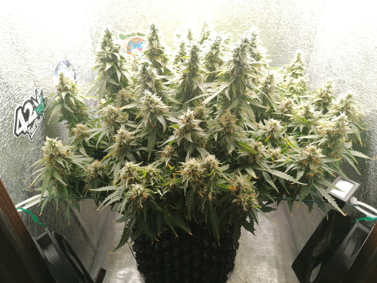 Абсолютный стелс-чемпион. Один из самых слабопахнущих сортов которые только возможно представить, NL или ДжекХериер по сравнению с ним - дикие скунсы. Ему не нужен фильтр в боксе если просто открыта форточка в помещении. Маленькое количество лопухов, огромное количество соцветий, жаль что не объёмных.