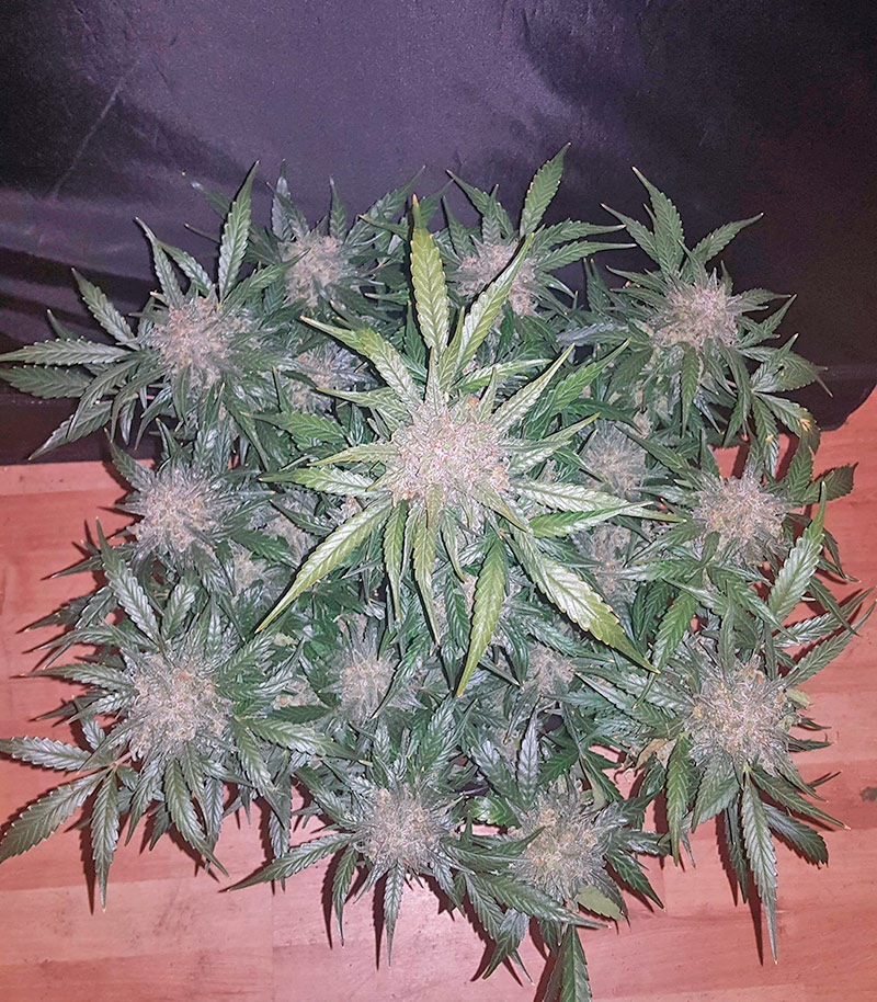 Под искусственным светом один квадратный метр полезной площади приносит до 600 грамм урожая. Если говорить об ауте, то производитель заявляет цифры 70-80 грамм с куста. При этом известны случаи, когда гроверы без особых усилий собирали и по 125 грамм. Средний рост кустов составляет 90 см, что очень неплохо при такой урожайности. Для выращивания подходят даже небольшие гроубоксы.