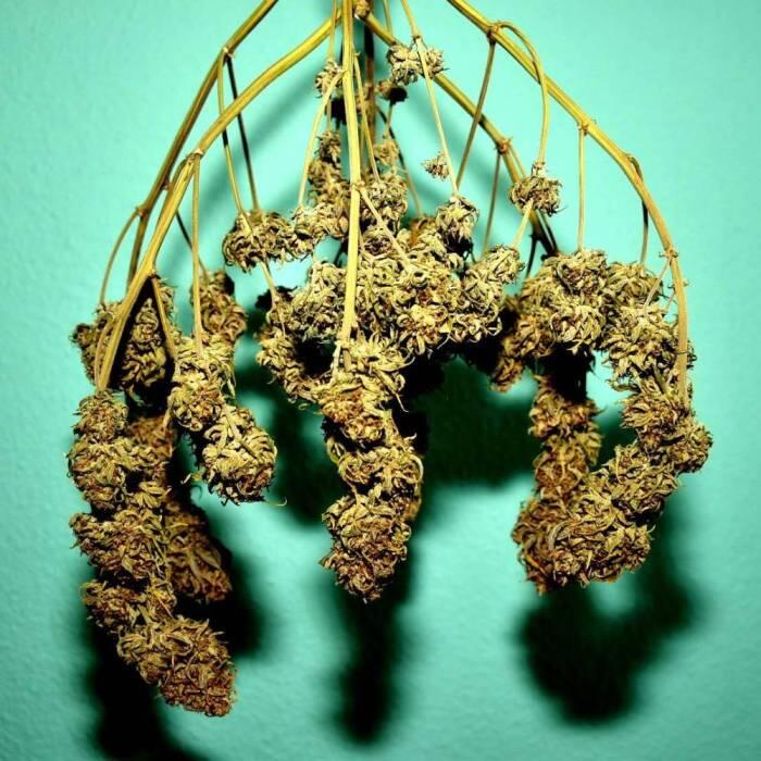 Эти малыши выросли исключительно хорошо. Я начал тренировать их всех очень рано, и они очень хорошо отреагировали. Медуза выросла в удивительное растение. Она очень красивая, с длинными липкими соцветиями, которые изумительно пахнут. Все кустики созрели и были срезаны на 71-й день.