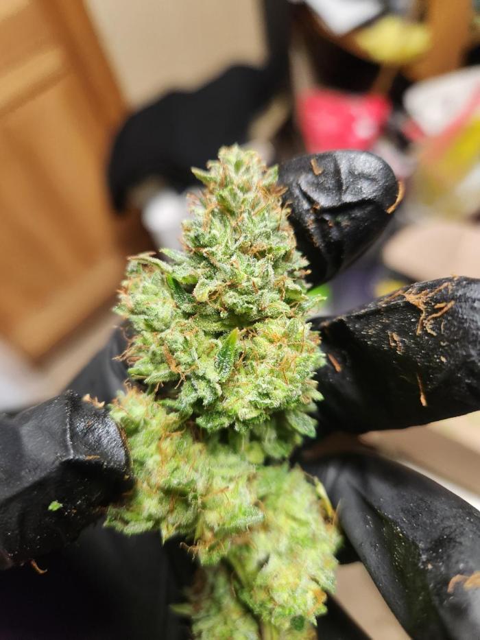 Удивительный автоцвет. Растиха в первые нежели жизни столкнулась с суровыми условиями, что это критично для автиков, выросло и дало урожай. Оно было небольшим, но шишки получились очень качественными. Аромат стоял насыщенный и прекрасный, напоминая легендарную классику индики. Я надеюсь, что вскоре получится вырастить этот сорт еще раз, но уже в более лучших и стабильных условиях.