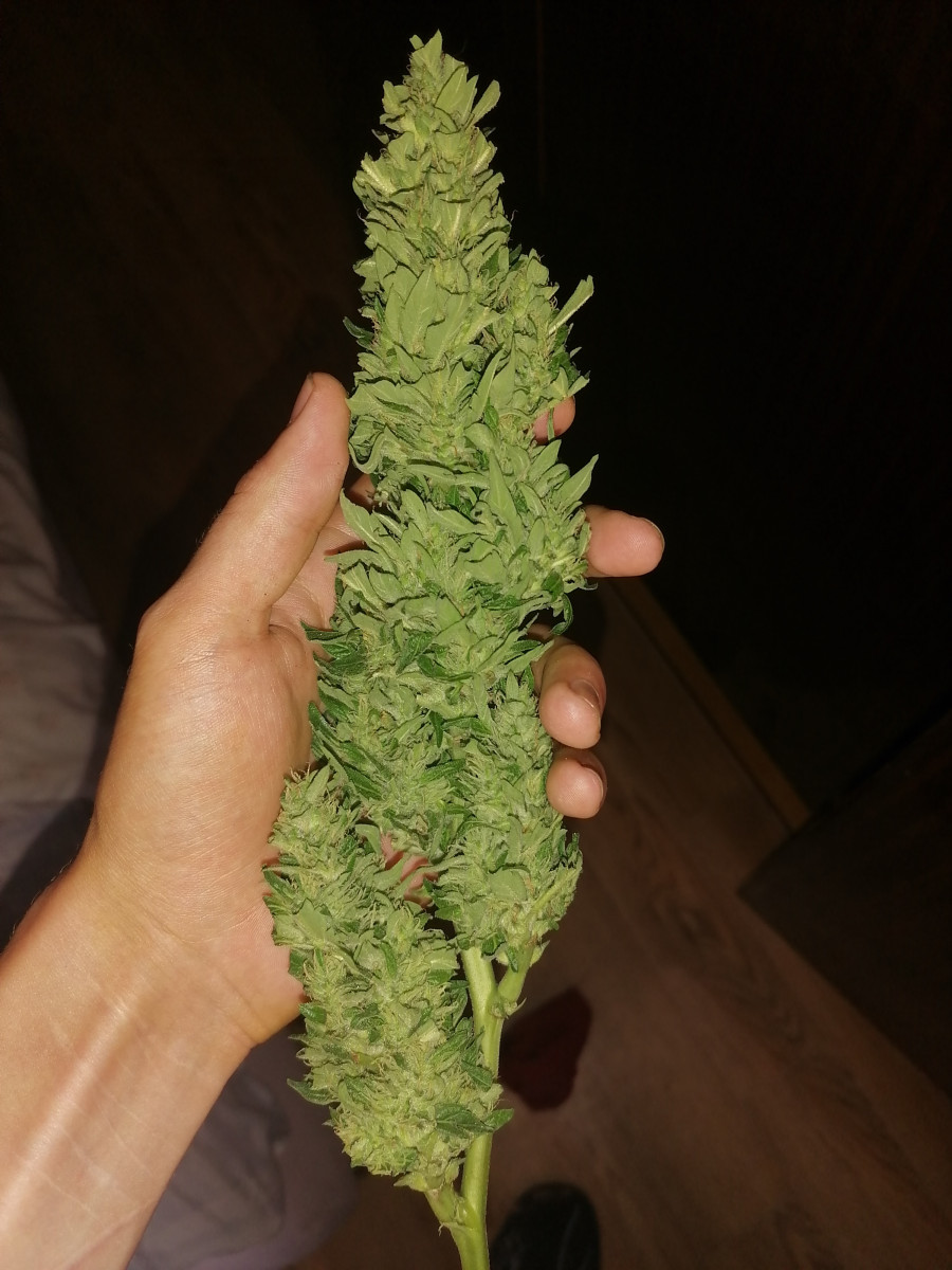 Но как бы то ни было, я собрал с него 250 гр сырого продукта (уже без стеблей и листьев). Думаю по итогу 50-80 гр сухого выйдет.