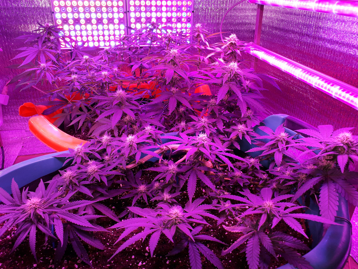 - Общие впечатленияВот и пролетел предцвет у Супер Лимонного Хэйз (он на переднем плане, на фото), а вот на заднем плане Критический Кали Мист, очень долго растёт, но оно и понятно, там ведь ещё больше сативных генов. Теперь у девочек начинается 2,5 месяца цвета и нарастания, вкуснейших и мощнейших шишуль. Растут кустики на чистом кокосе, если кто думает что на кокосе просто выращивать, то это не совсем так. Для выращивания на чистом кокосе нужны хорошие приборы измерения и хорошие удобрения ну и некоторые познания, тут точно на глазок разводить удобрения не получится. Самым большим преимуществом выращивания кустиков на кокосе перед выращиванием на почве считаю, что в кокосе не заводятся вредители, а это очень сказывается на росте растих, часто в почвосмесях даже в покупных очень много всяких личинок вредителей встречается. Запах от кустиков уже стал проявляться, на пике цветения думаю будет очень мощно попахивать. Советую выращивать эти сорта только терпеливым и толерантным гроверам, это вам не скоростные автики, но впоследствии терпение очень неплохо вознаграждается наслаждением вкуснейшими и мощнейшими шишками. Всем МИР и до встречи в следующих отзывах!!!